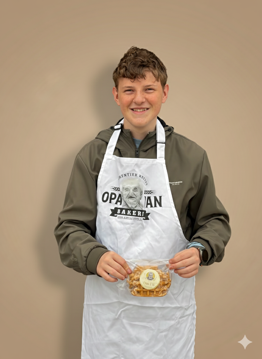 Joren is onze meesterroller en hij rolt met de perfecte ronde bolletjes, iets waar hij zichtbaar trots op is en waar onze koekjes elke keer beter van worden, hij doet dat op zijn tempo, met aandacht en een glimlach wanneer alles klopt.
