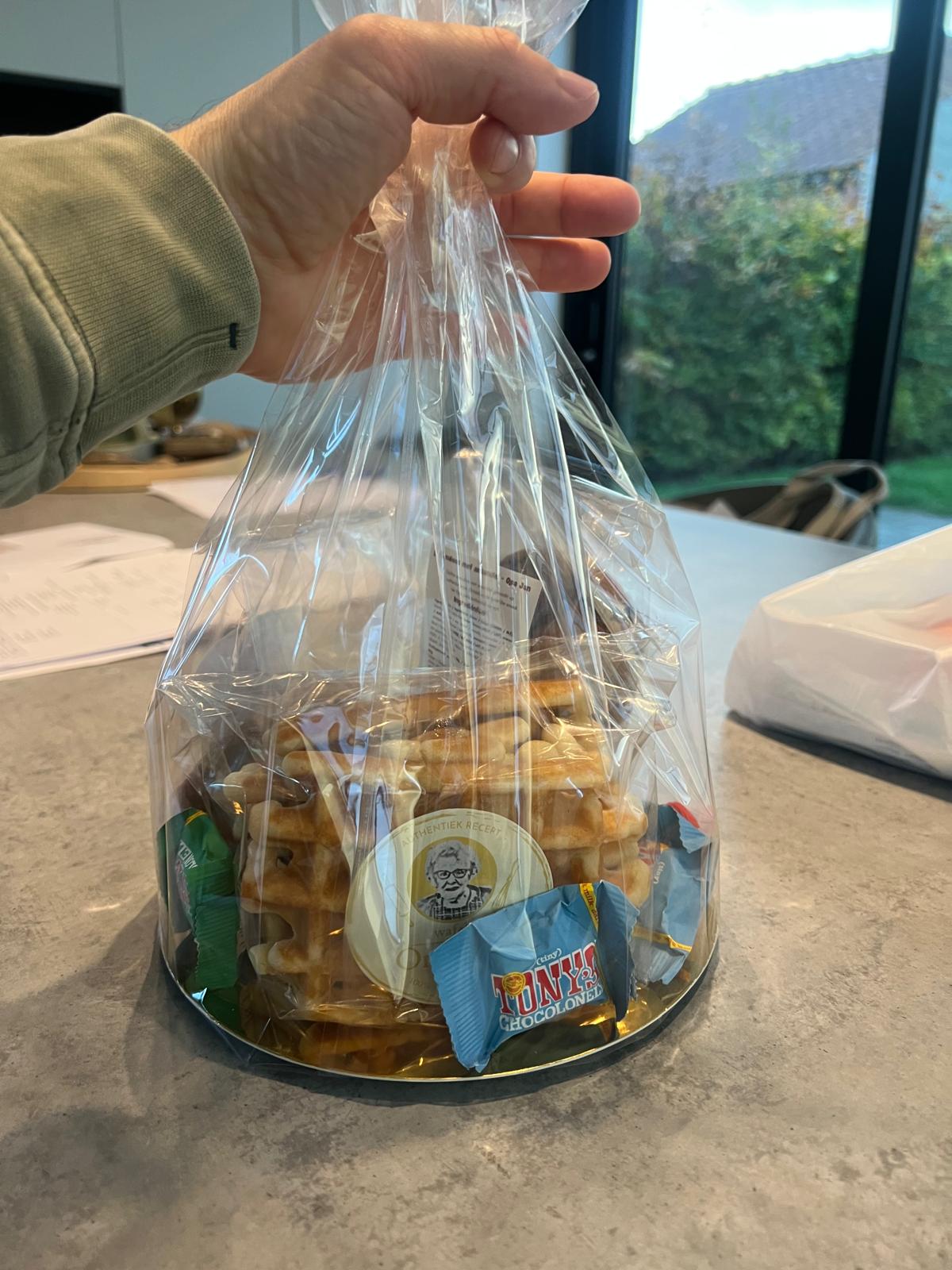 - Zakje Opa Jan Wonderlijke kleine Speculoos- Pak Oma Dil betoverende wafels- 6 Tony's Chocolonely minichocolaatjes- 2 clementinetjes